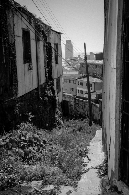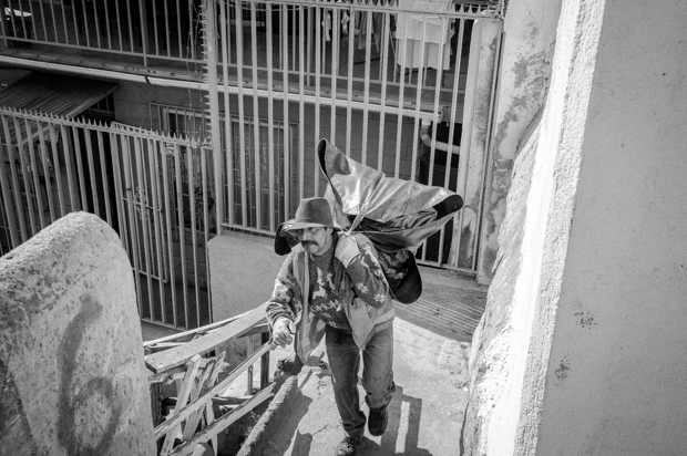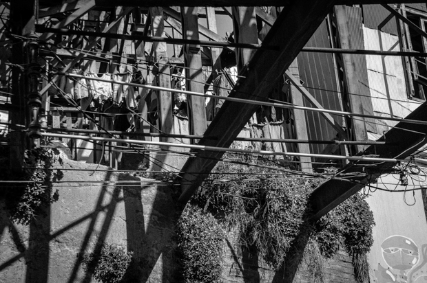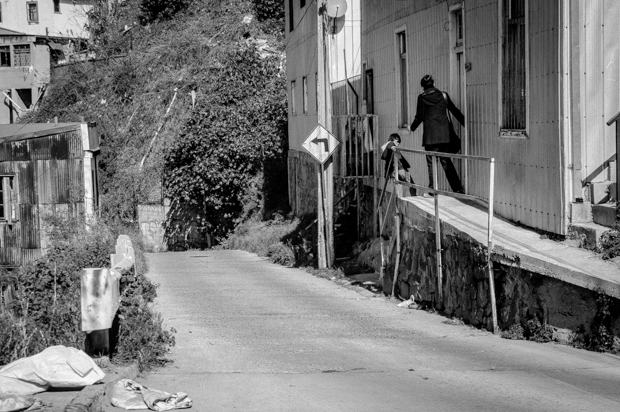 El infinito laberinto de escalas que unen cerros y plan, en un ir y venir de hombres y mujeres de todas las edades, que bajan “al plan”, a los puntos de encuentro donde la ciudad se articula y luego de cada jornada vuelven al hogar en los cerros, donde se construyen las esperanzas que se elevan como volantines al horizonte infinito del mar, que trae la música salina que encanta a sus habitantes.