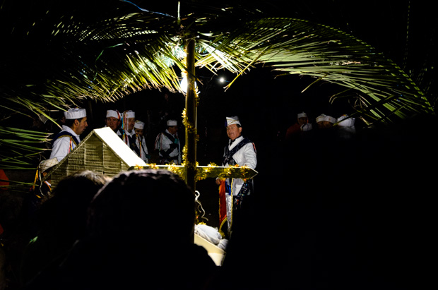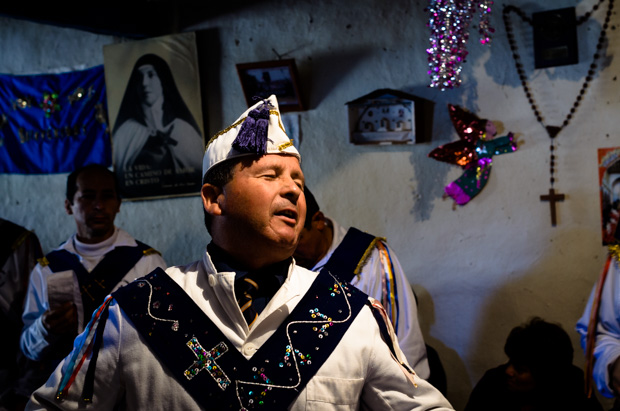 En la noche del primer día la “Cruz” sale de la capilla, casi colonial, para desfilar por el pequeño patio que la rodea y es depositada a altas horas de la madrugada en la parte posterior del predio, desde allí en procesión se vuelve a la capilla, y las cantoras y cantores cantan alabanzas en décimas durante toda la noche. Al otro día se celebra misa, los chinos salen a recoger la cruz y la devuelven en procesión a la capilla. El altar, ya oscurecido por una negra tela, espera las últimas alabanzas y despedidas hasta el próximo año, y sus cantores, alférez y danzarines de todas las edades, dejas sus indumentarias e instrumentos en el altar, resguardados por las “mayordomas”, hasta el siguiente mes de mayo, para repetir el ritual sagrado e interminable de la devoción popular.